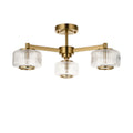 This 3 light semi flush ceiling light showcases a refined mid-century aesthetic with its trio of delicately ribbed glass shades. Each shade casts a soft, diffused glow, beautifully complemented by the brushed aged brass metal finish for a look that exudes warmth and elegance. Perfect for lower ceilings or compact spaces, it offers a stylish timeless solution.
