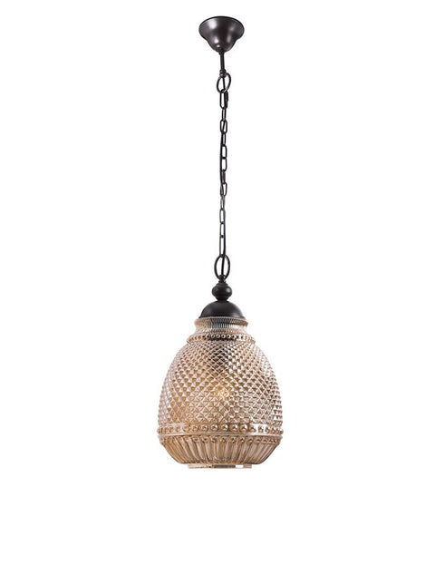 TOULON Amber Glass Dark Brown Base & Chain LED E27 1x12W IP20 Bulb Excluded D: 27 H1: 45 H2: 120 cm