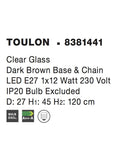TOULON Clear Glass Dark Brown Base & Chain LED E27 1x12W IP20 Bulb Excluded D: 27 H1: 45 H2: 120 cm
