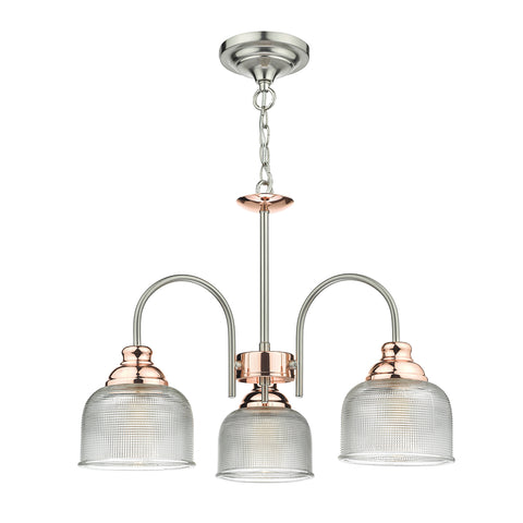 Wharfdale 3 Light Pendant Satin Chrome & Copper Textured Glass